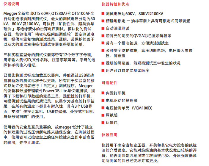 - Megger绝缘油测试仪