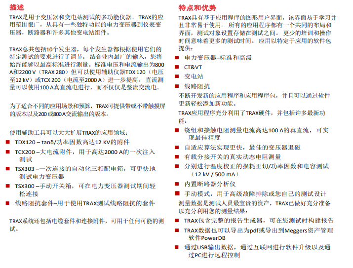 变压器及变电站测试系统TRAX220产品介绍