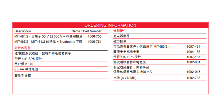 MIT481/2 50 V、100 V、250 V、500 V* + 存储